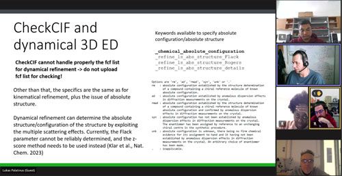 Ashwin Suresh had an oral on “Atomic ionization determined by dynamical kappa refinement against 3D electron diffraction data” in the session on electron diffraction joining forces with quantum crystallography towards materials science and application. Ashwin have shown amazing results of the detection of charge density effects with 3D ED data.