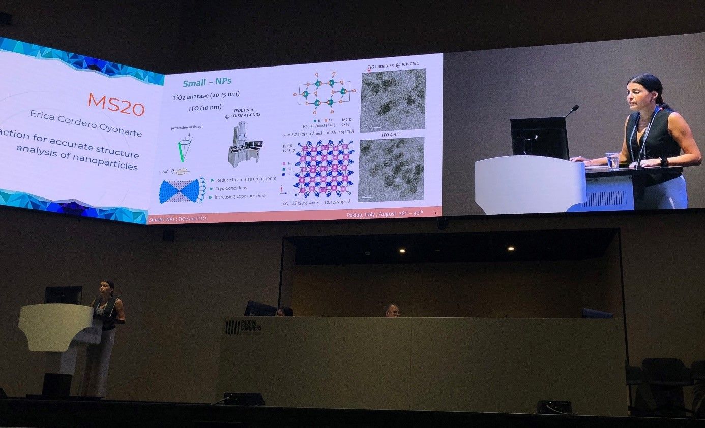 Erica Cordero-Oyonarte had an oral in the session “when can ED challenges XRD in small molecule crystallography?”. Erica’s talk was on 3D electron diffraction for accurate structure analysis of nanoparticles and described the interplay between minimum crystal size and accurate dynamical refinement with 3D ED data.